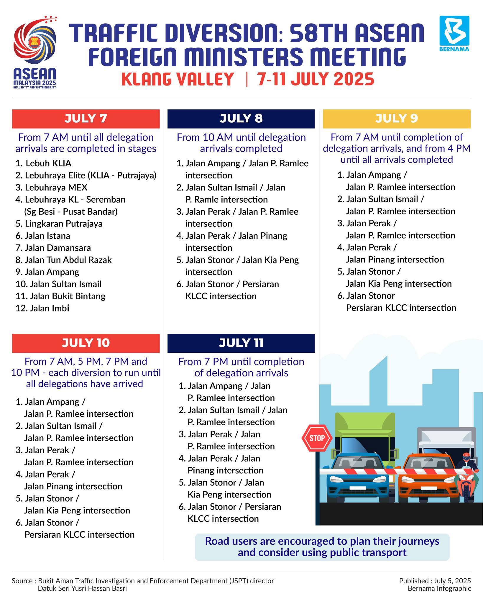 IMPORTANT: KL Road Closures from 2025 July 7 to 11 for ASEAN SUMMIT 2025